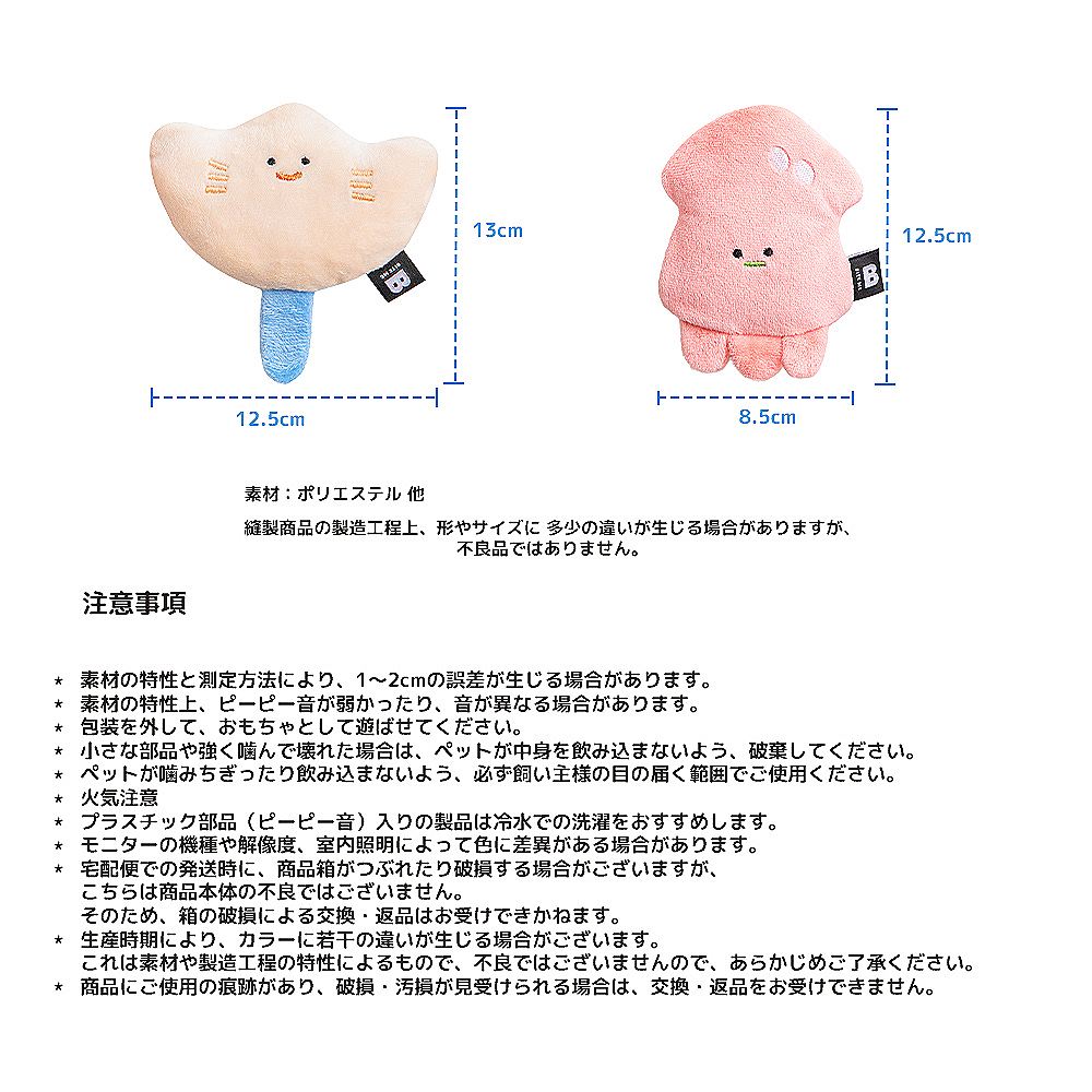 | サイズ | 【本体】 エイ:約w125×H130mm イカ:約w85×H125mm |